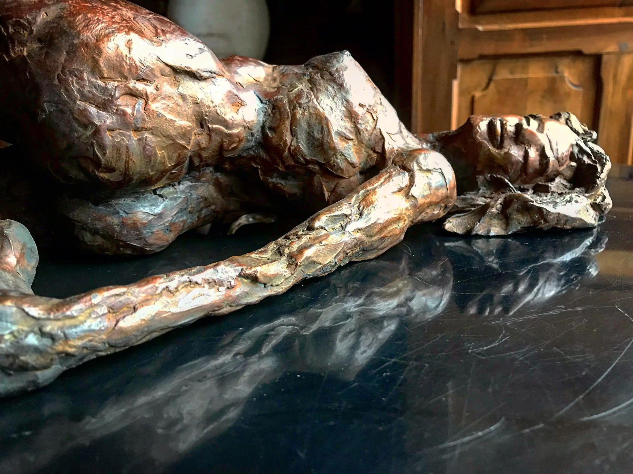 This series of photographs documents the making of Mermaid, a commissioned sculpture created for a pond. It follows the work from the first stages in the studio to the final bronze, showing how the sculpture develops through modelling, mould making, casting, assembly, and patination. Both in the studio and in the foundry, the process is carefully carried out by hand.