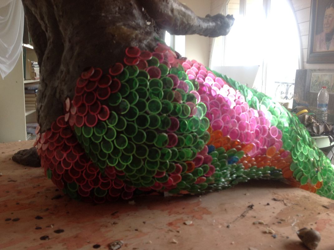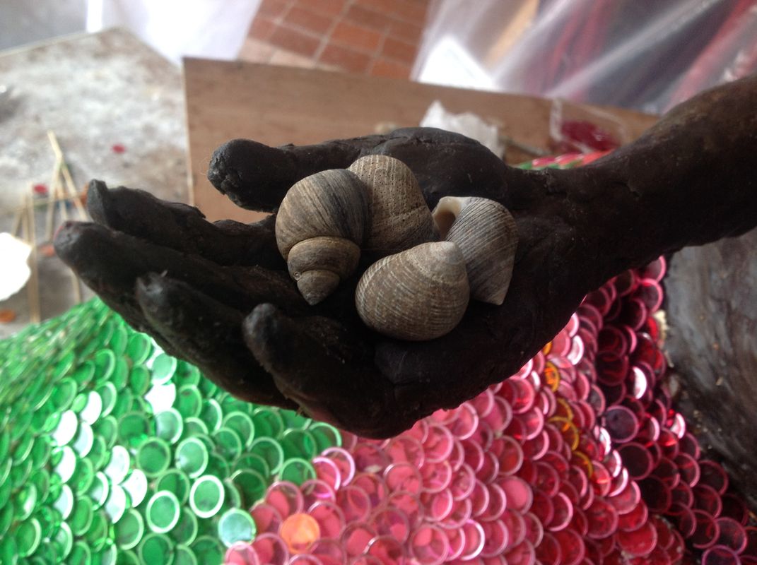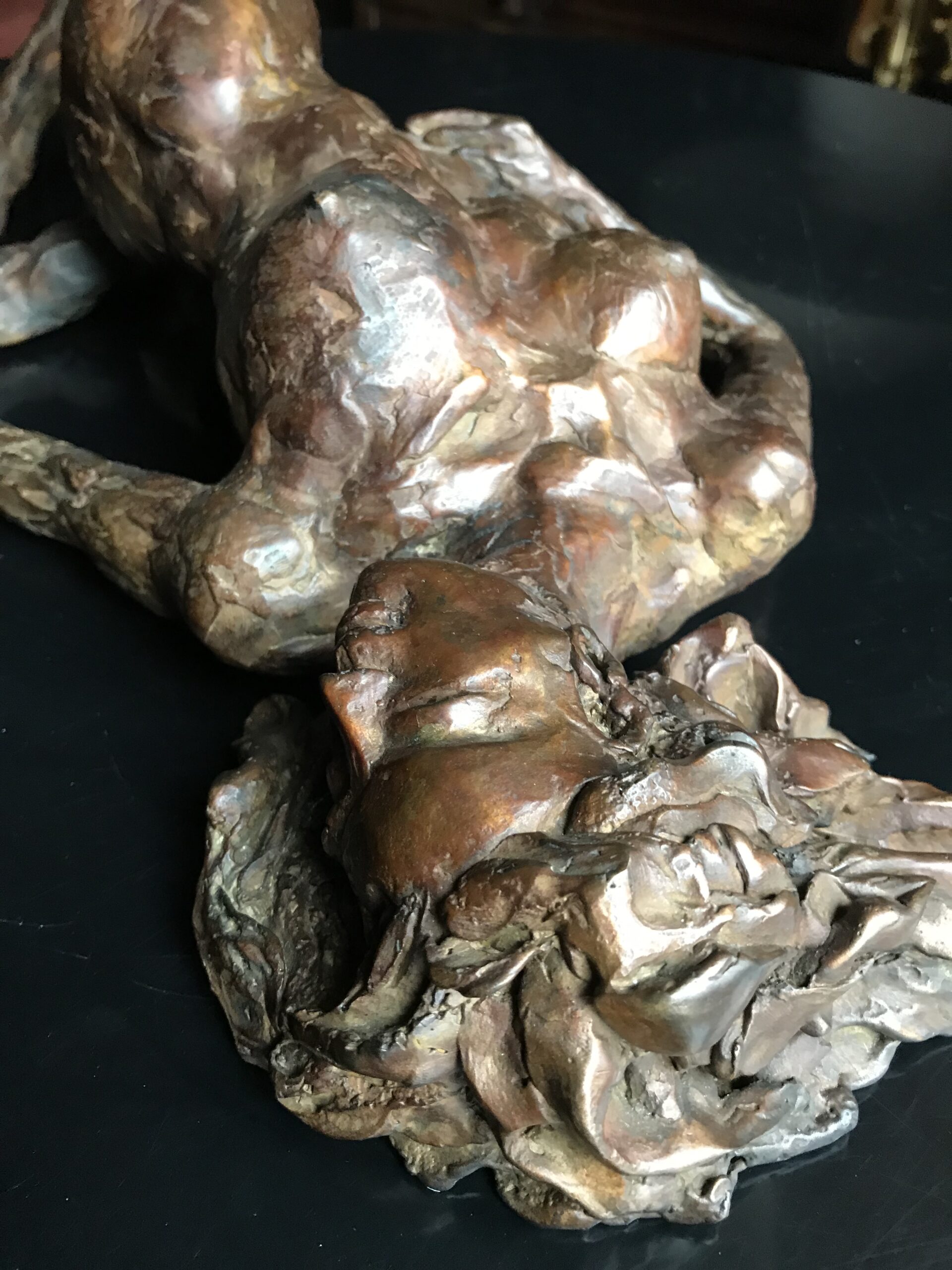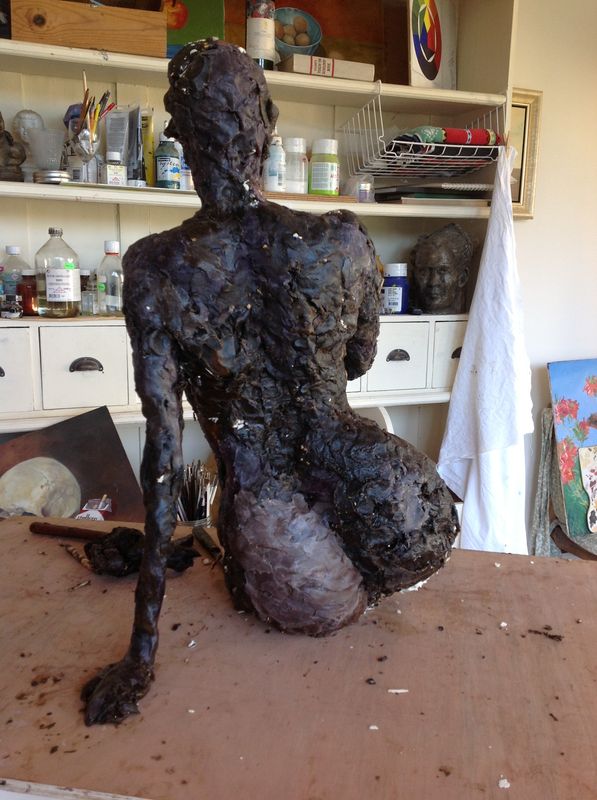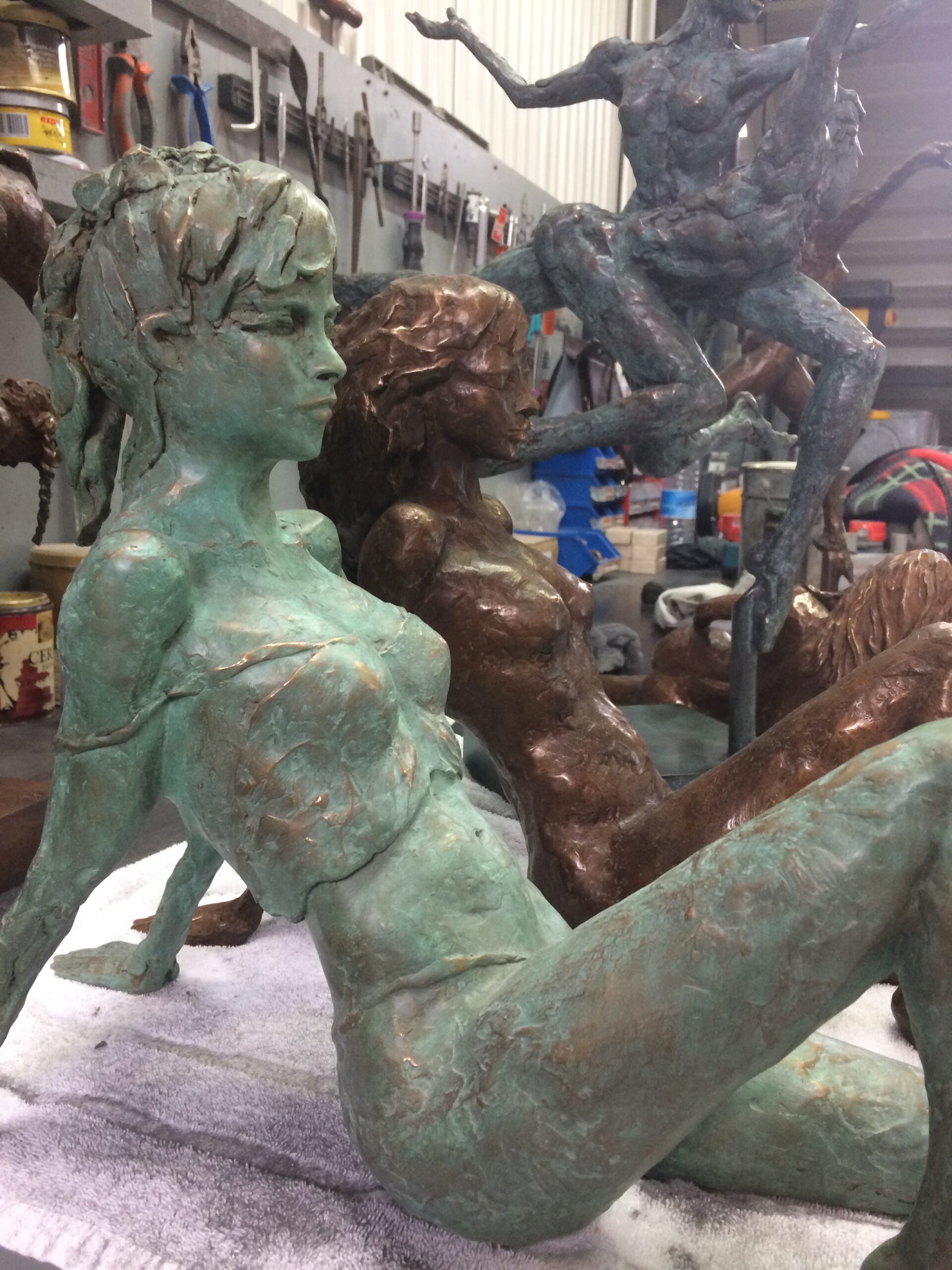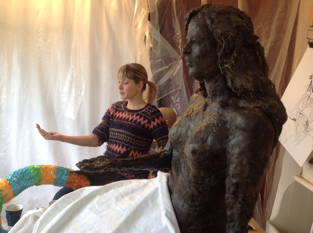 The sculpture begins as an original model, in which the overall form, movement, and proportions of the mermaid are developed. At this stage, the relationship between the body, the tail, and the gesture of the figure is gradually refined.